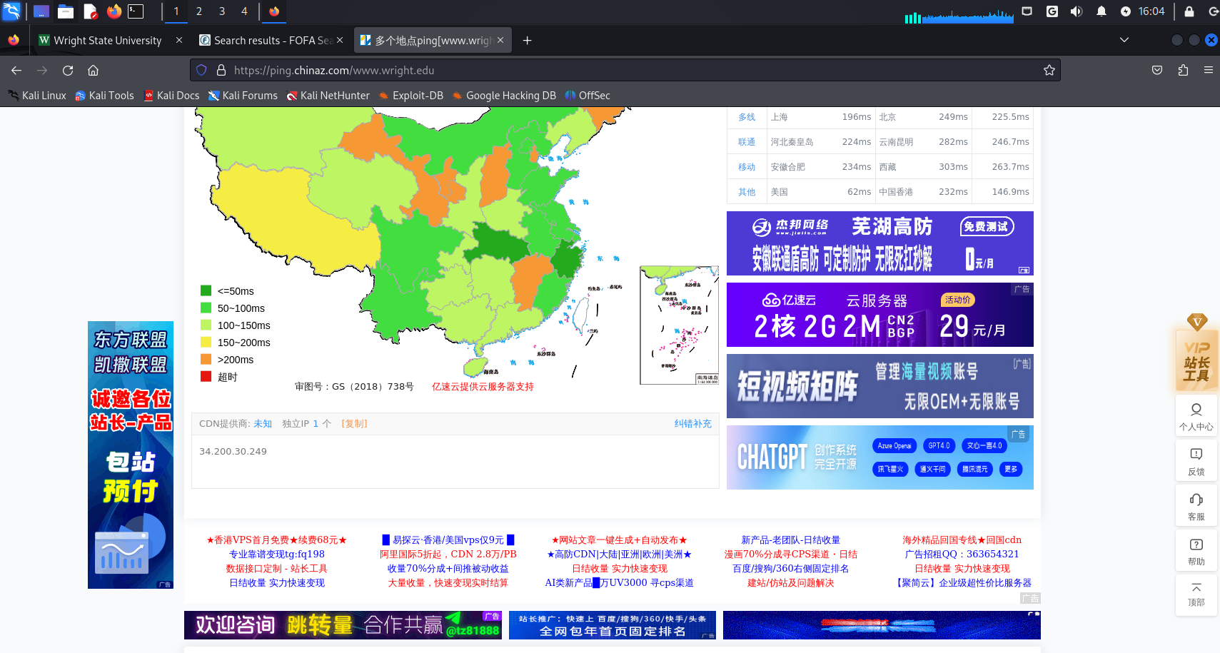 通过超级ping查询其CDN的ip,如图