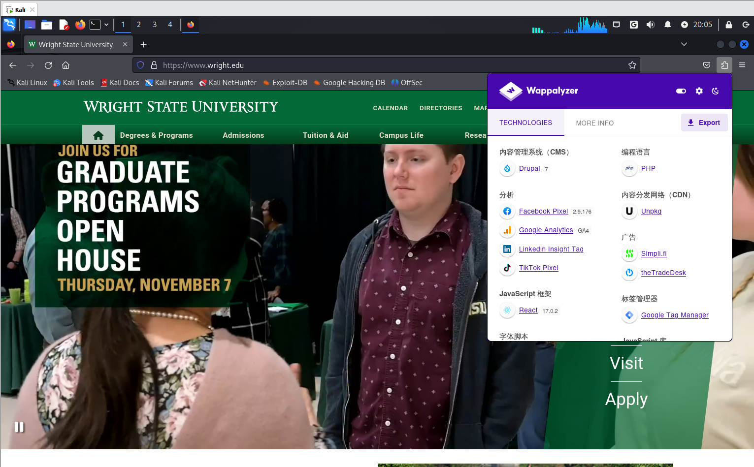 通过Wappalyzer插件分析网站使用的技术,如图